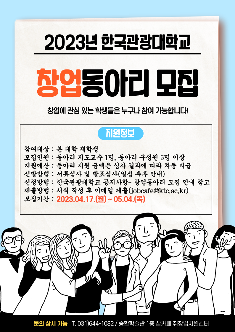 창업마인드 확산 및 미래 기업가 양성을 위한 2023년도 교내 창업동아리를 다음과 같이 모집하오니 많은 참여 바랍니다.