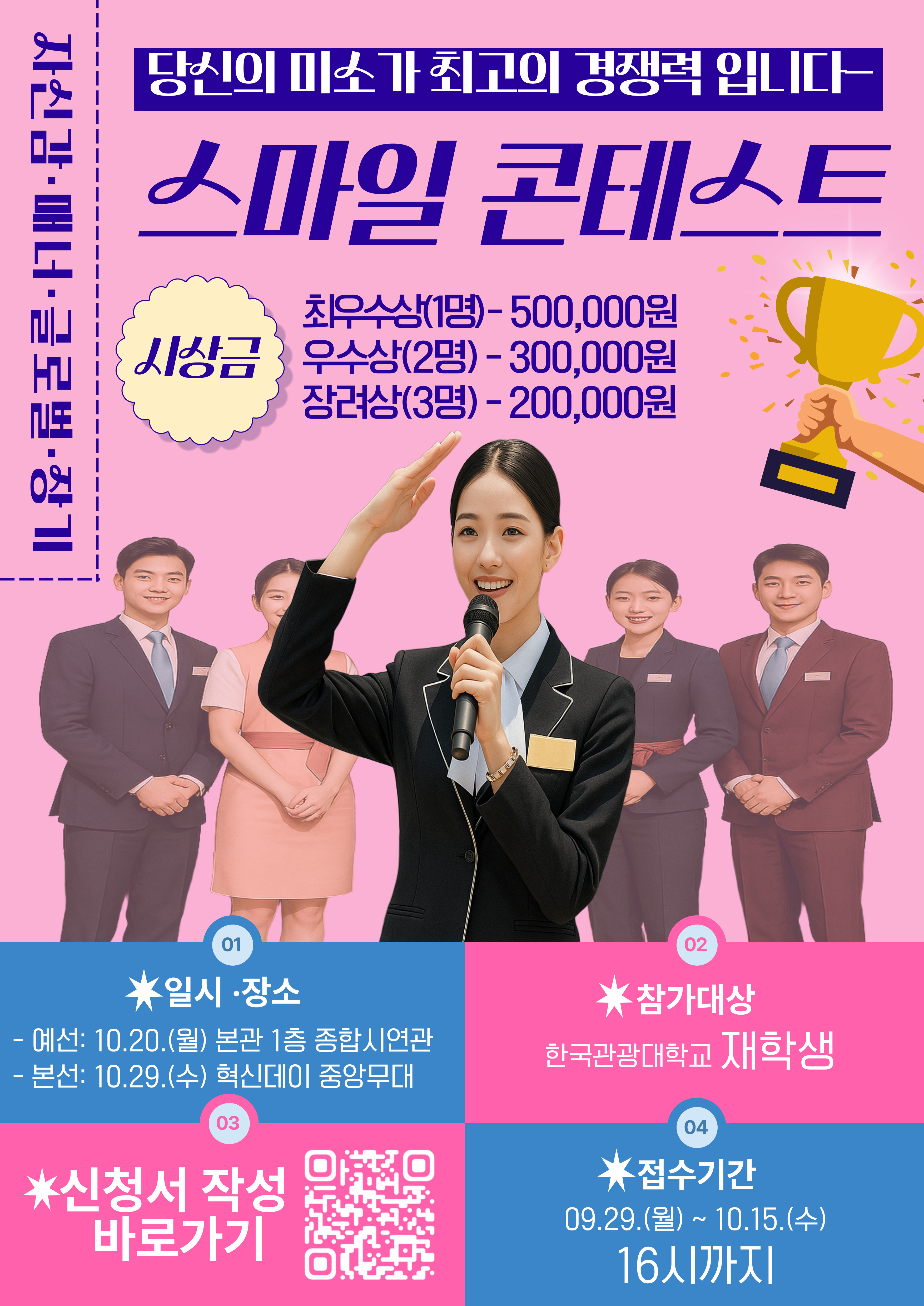 2025년도 한국관광대학교 스마일 콘테스트 개최를 안내드립니다.