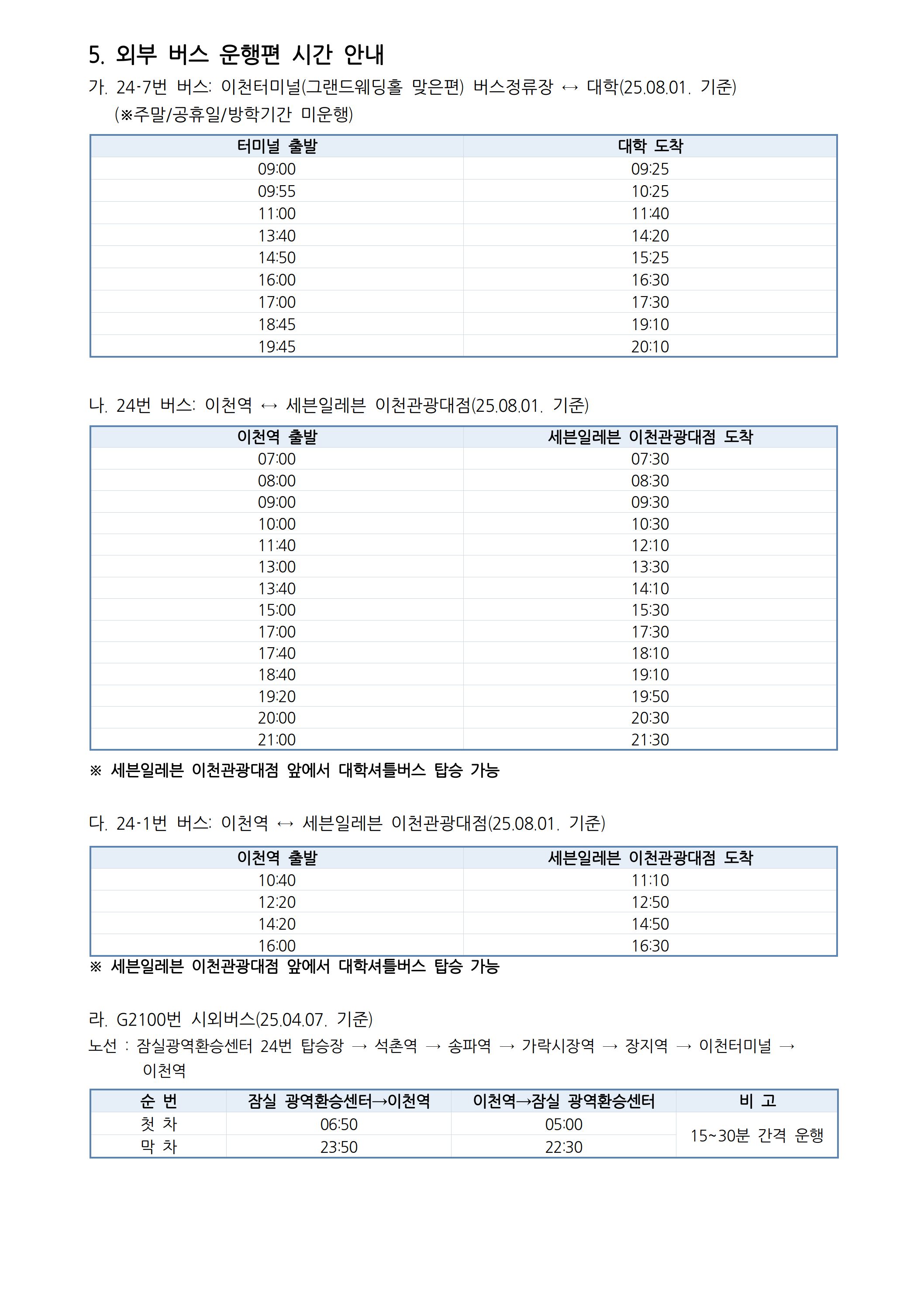 | 외국인유학생정보 | 국제교류원 | 031-644-1028 |