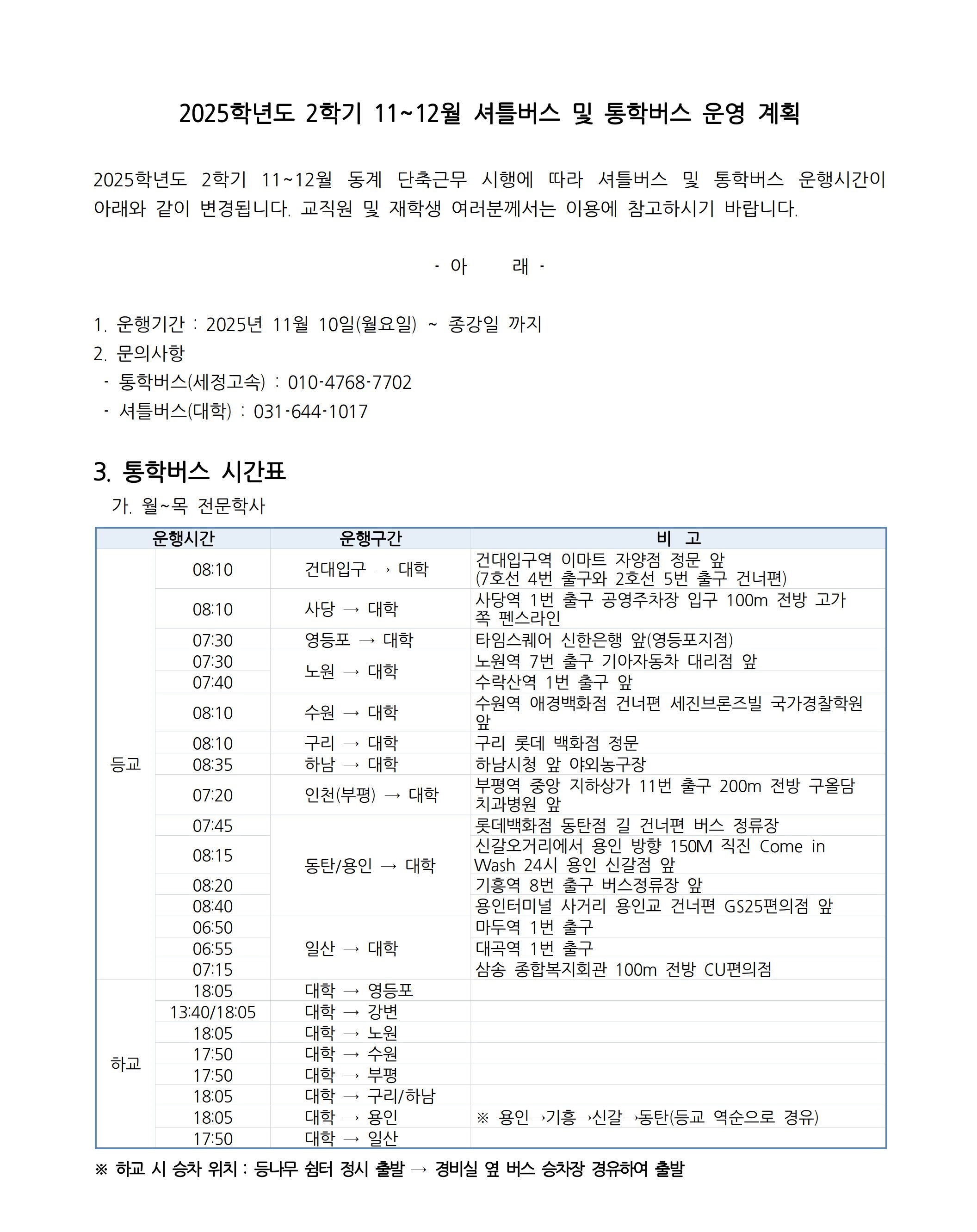 | 입학 지원자 명단 | 교학처 | 031-644-1018 |