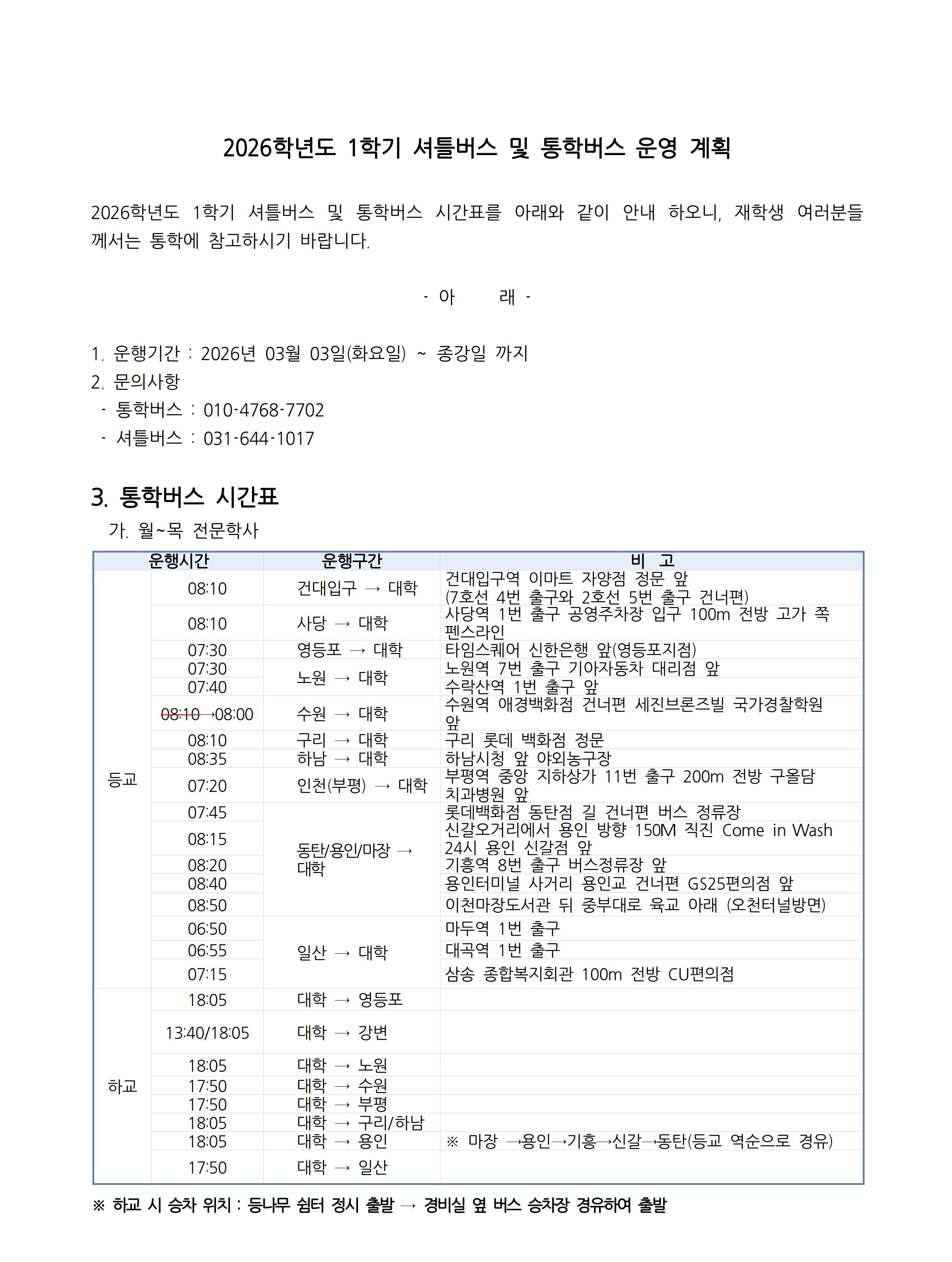 | 외국인유학생정보 | 국제교류원 | 031-644-1028 |