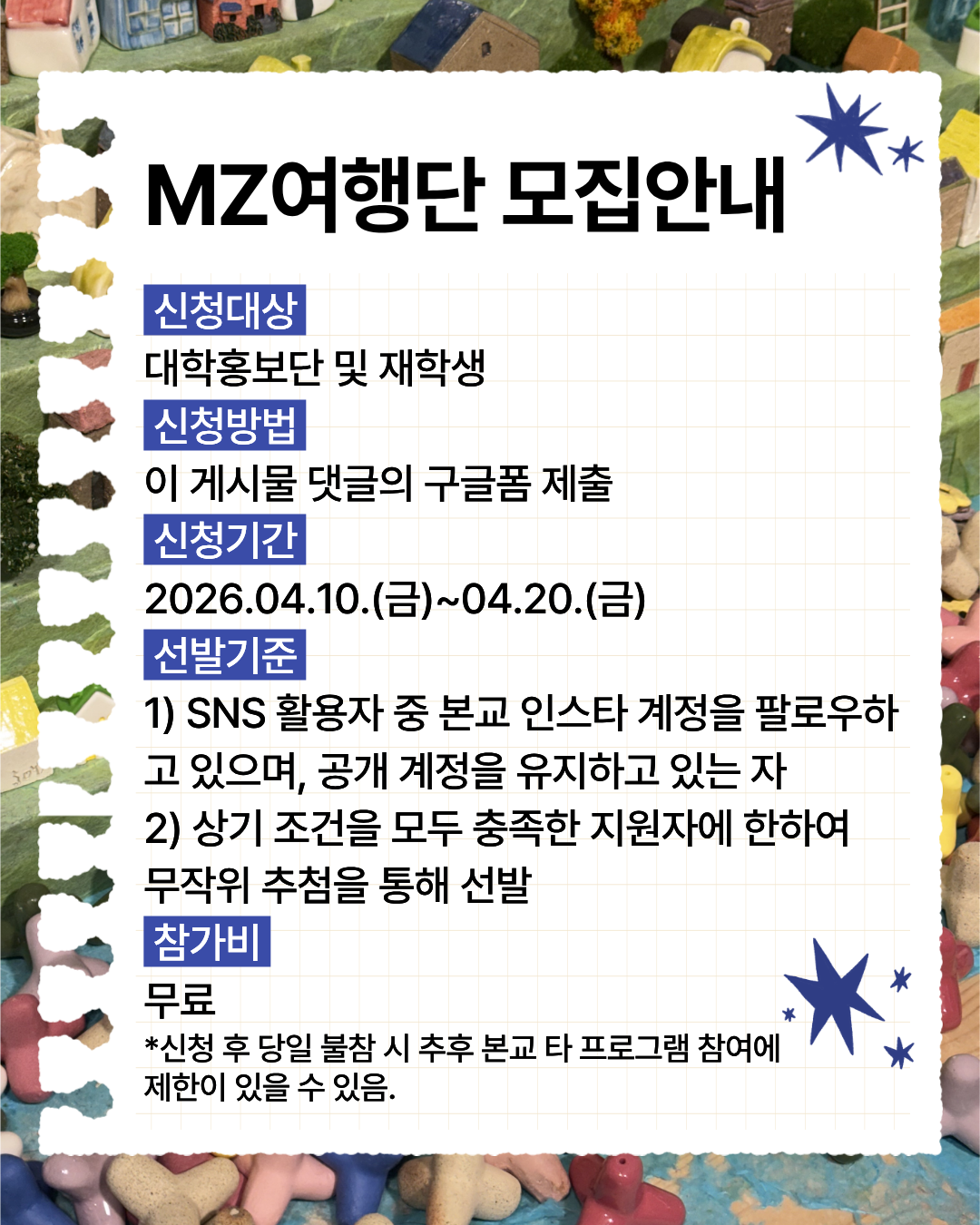 한국관광대학교에서 핫플을 찾아다니는 MZ여행단을 모집합니다!