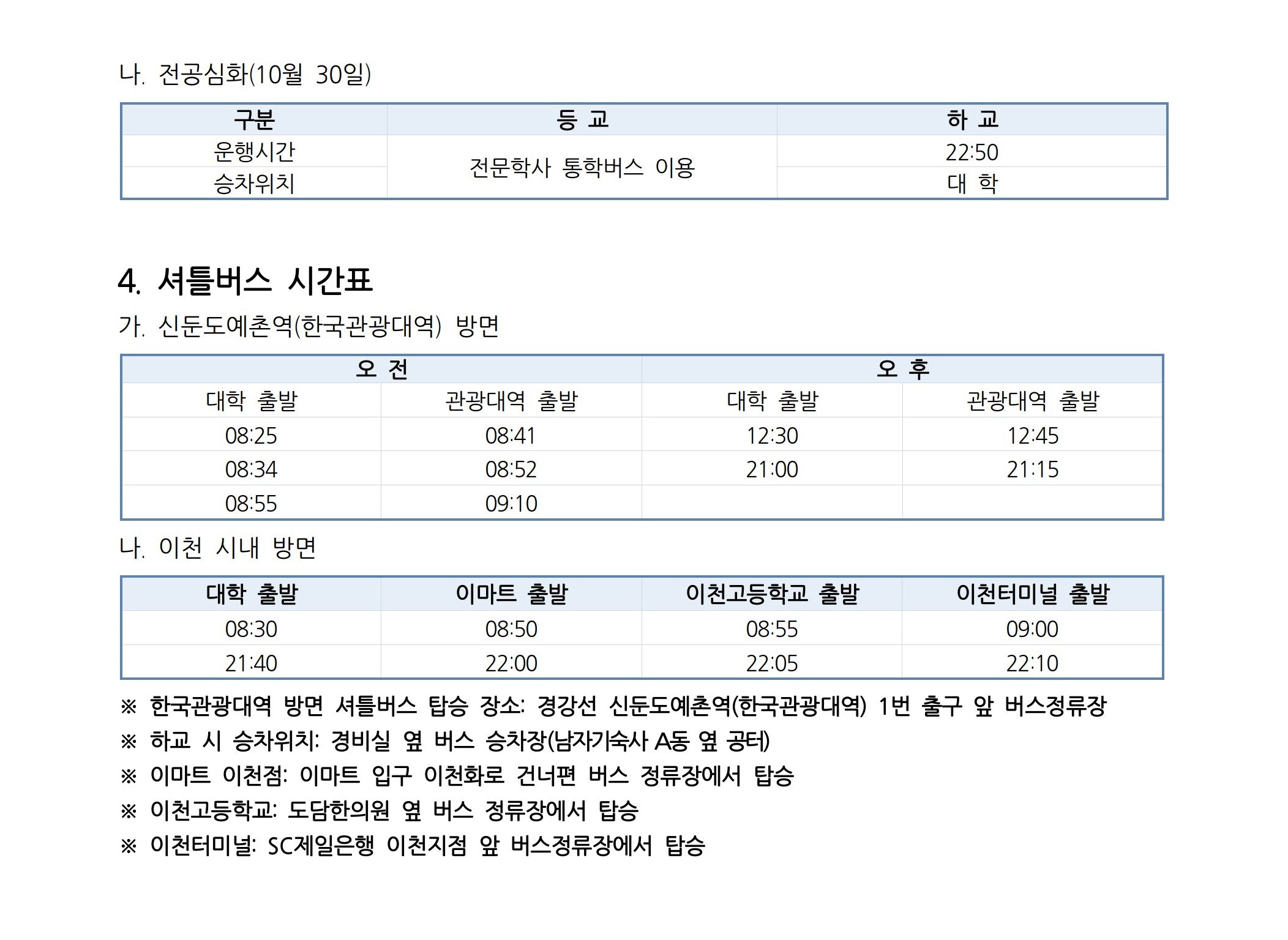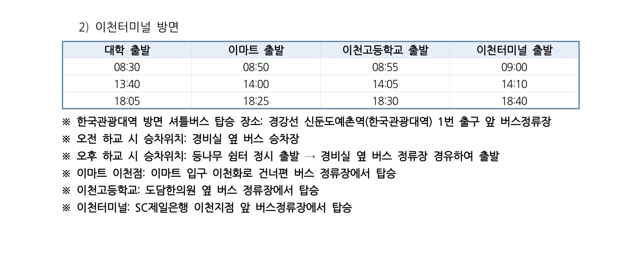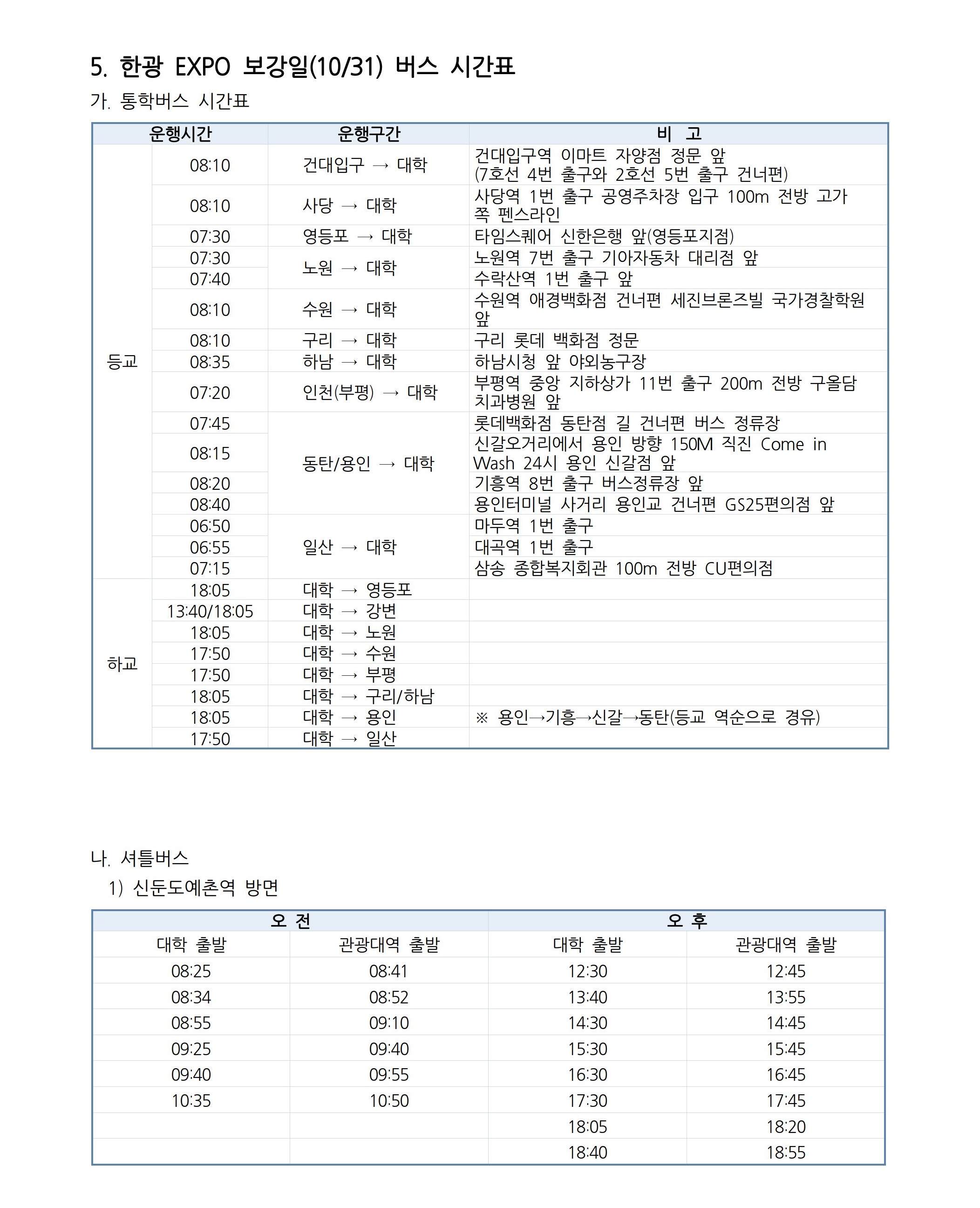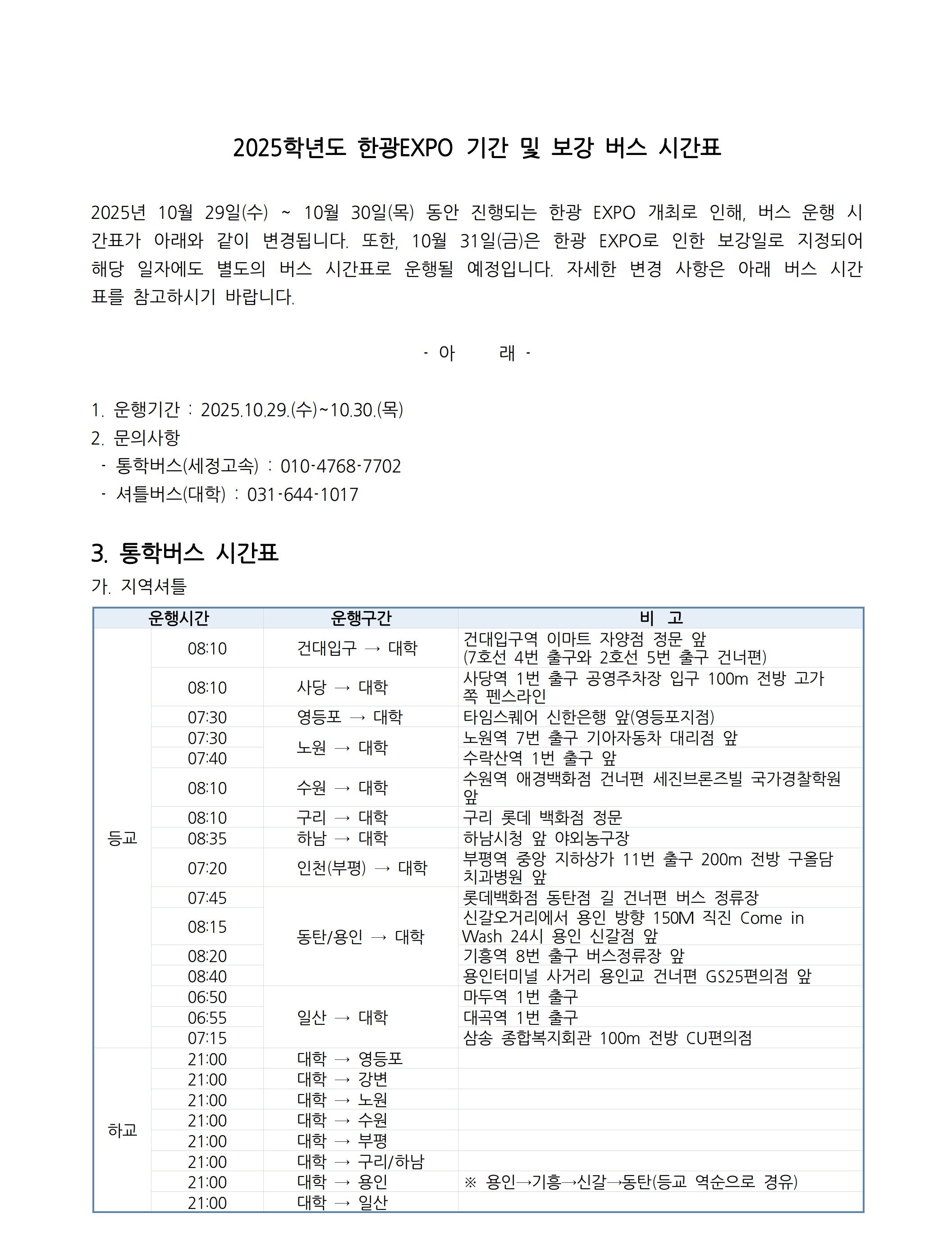 2025 한광expo 기간 및 보강 버스 시간표 안내