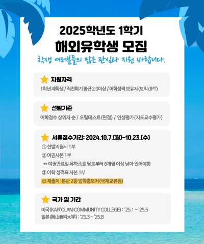 2025학년도 1학기 해외유학생 모집 공고
