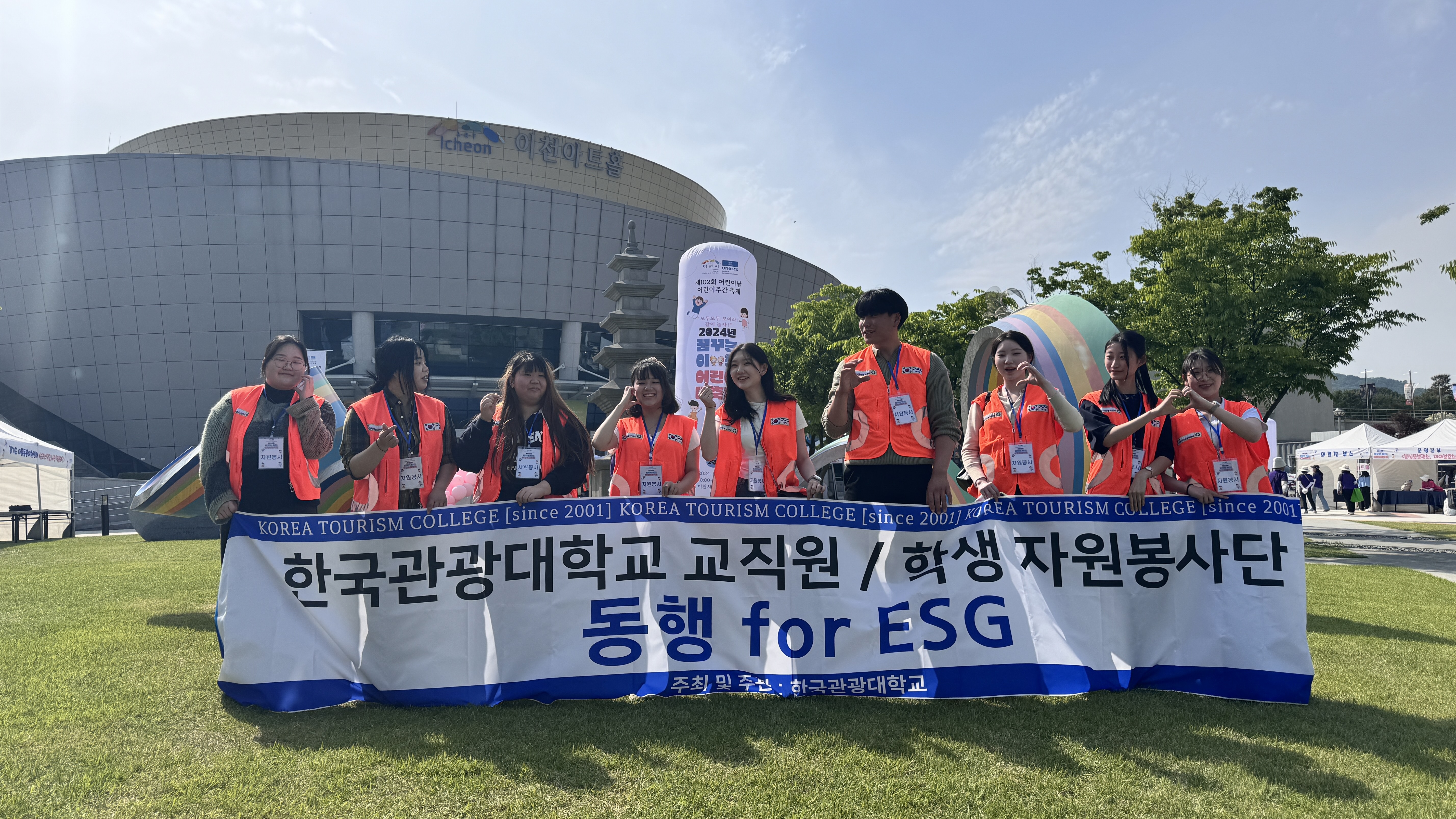 한국관광대학교(총장 최형인) 학생회는 지역사회 공헌을 위해 지난 5월4일(토) 이천시 주관으로 진행 된 어린이날 행사에 자원봉사를 실시하였다.