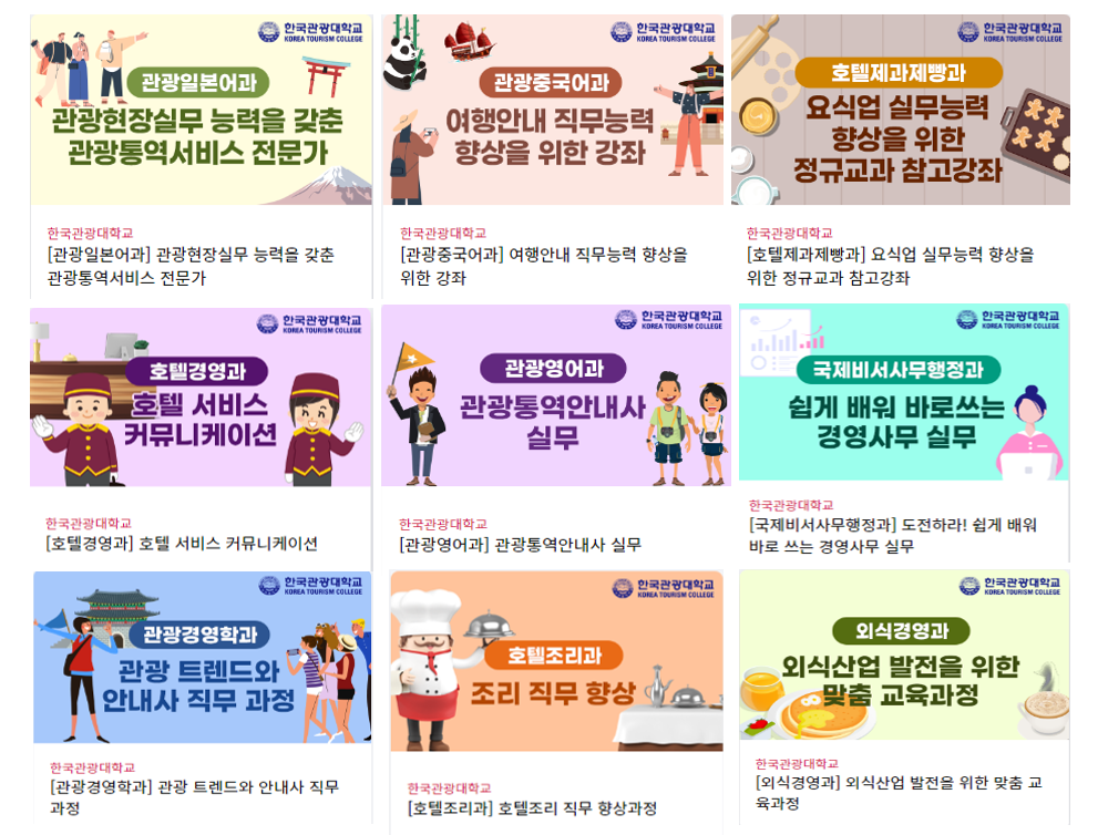 한국관광대학교(총장 최형인)는 지난 7월 한국관광공사와의 관광인재양성 협력 협의 내용 이행의 일환으로 ‘관광e배움터 심화활용’을 진행한다고 밝혔다.