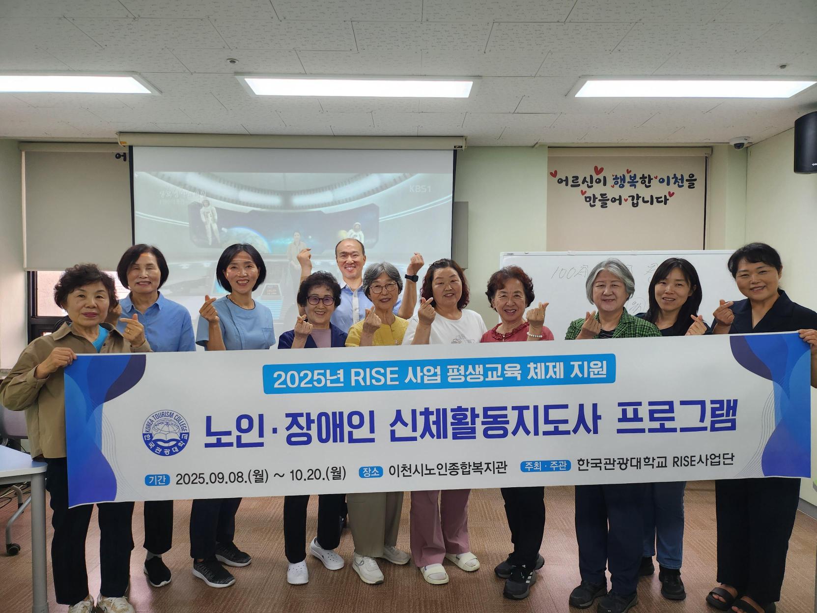 한국관광대학교(총장 김성용) RISE사업단은 평생학습지원체제의 일환으로 노인·장애인 신체활동지도사 프로그램을 운영하여 성공적으로 마무리했다.