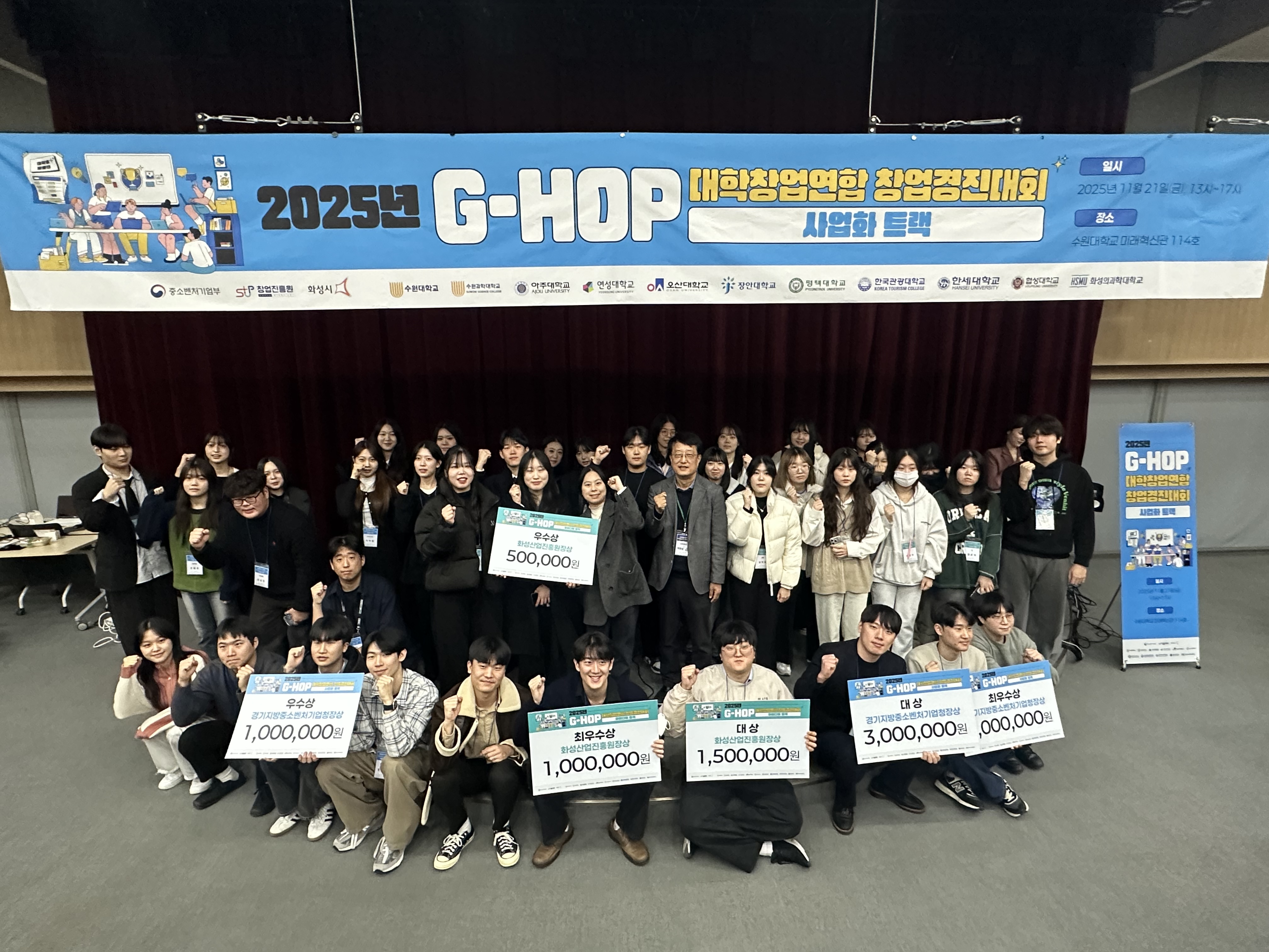 한국관광대학교(총장 김성용)는 지난 11월 21일(금) 수원대학교에서 진행된 ‘2025년 G-HOP 대학창업연합 창업경진대회’에서 아이디어 트랙 대상을 수상하며 혁신적인 창업 역량을 입증했다.