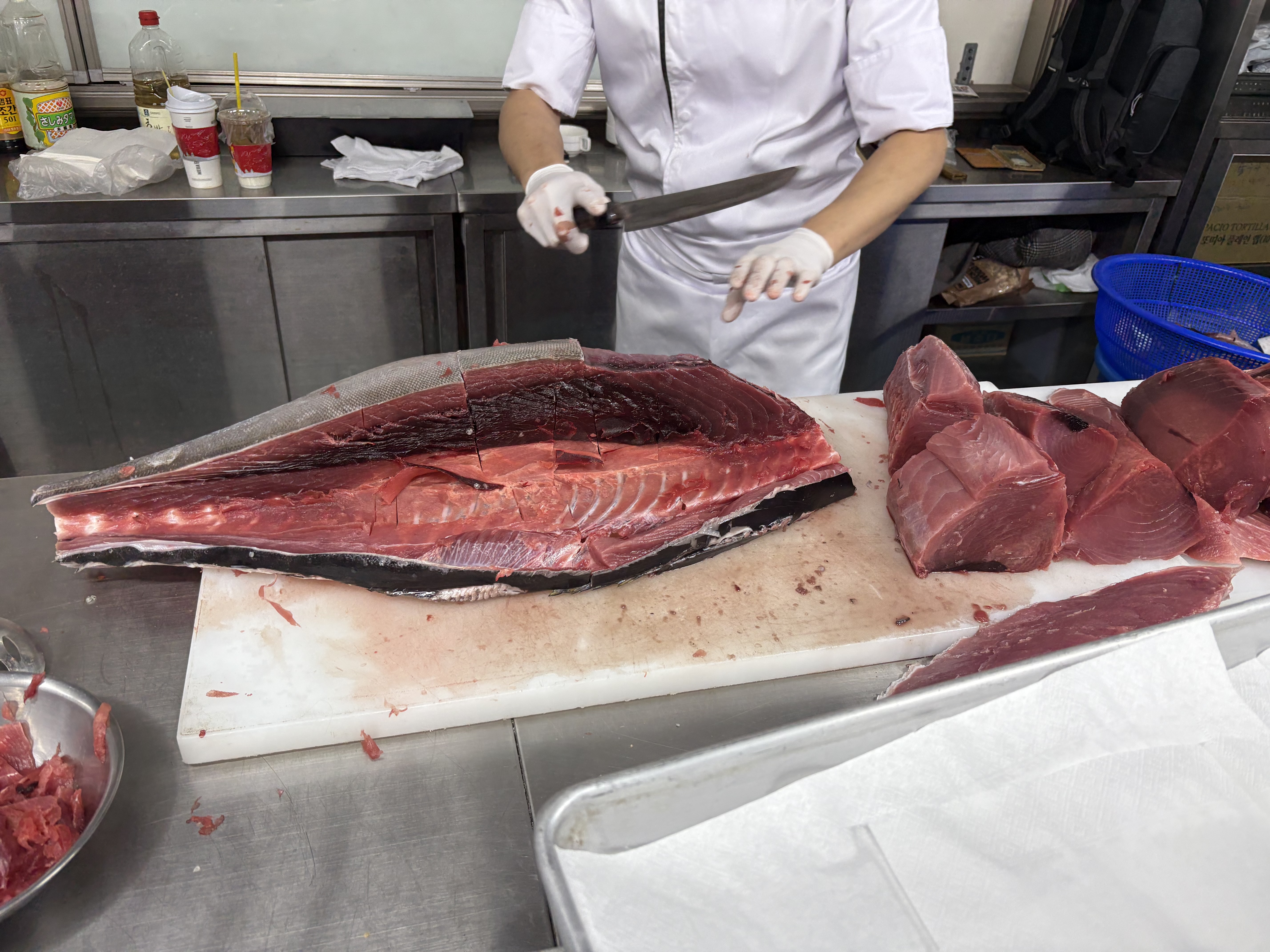 이번 특강은 냉동 참치 해동 및 부위별 썰기부터 빅아이 참치 머리 및 몸통 해체 등 고도화된 실무 기술을 학습하여, 학생들이 일식 조리와 연관된 직무를 수행하는 데 필요한 전문성을 갖추도록 지원하는 데 중점을 두었다.