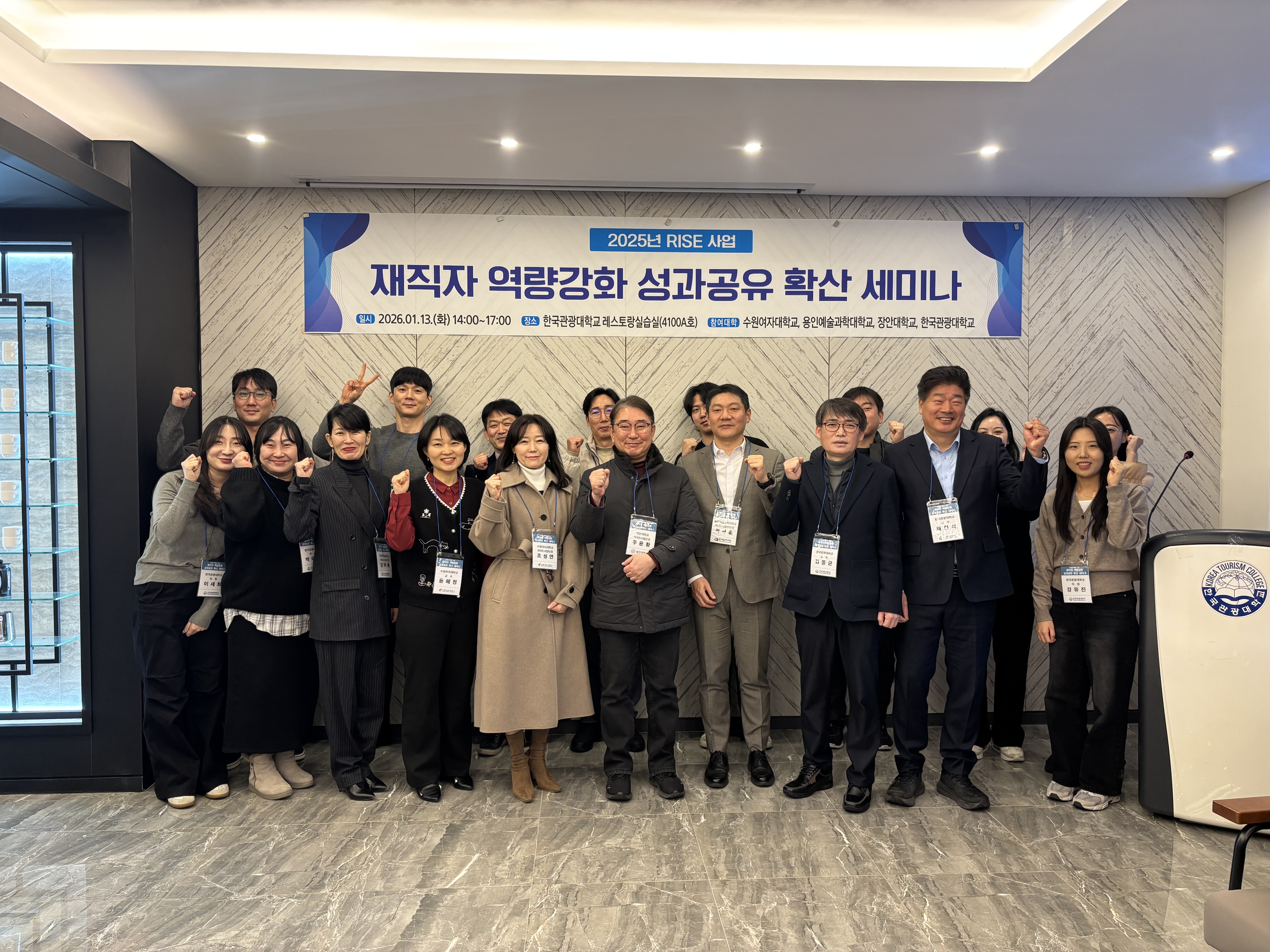 한국관광대학교(총장 김성용)는 지난 2026년 1월 13일(화) 교내 레스토랑 실습실(4100A)에서‘재직자 역량강화 성과공유 확산세미나’*를 성공적으로 개최했다.