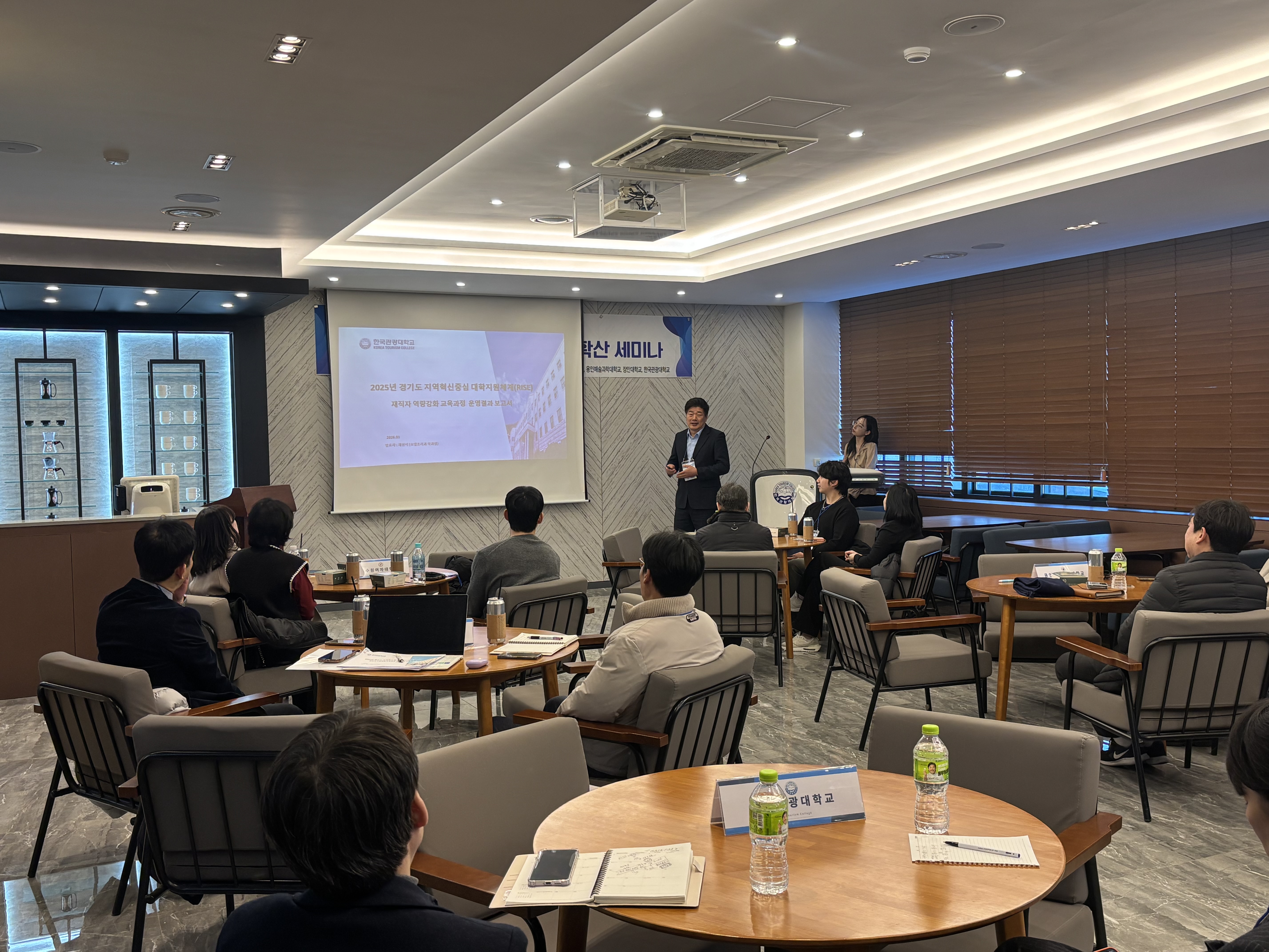 이번 세미나는 경기도 RISE사업(지역혁신중심 대학지원체계)의 일환으로 추진되었으며, 재직자 역량강화 프로그램 운영 성과를 공유하고 지역–대학–산업체 간 협력 성과를 체계적으로 확산하기 위해 마련되었다.