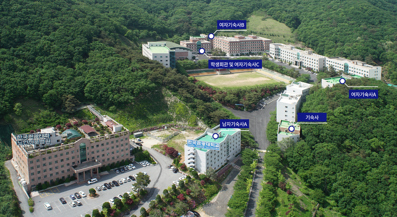 남자기숙사 (정문앞) / 여자A동 : 2강의동 옆 / 여자B동 : 1강의동 옆 / 여자C동 : 학생회관 3,4층